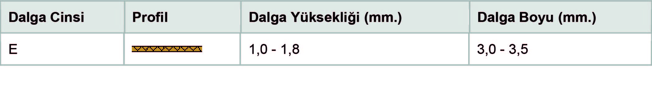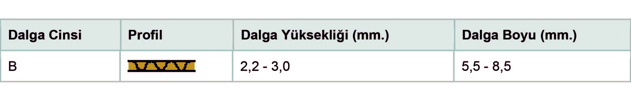 » Metredeki oluk sayısının fazla olması nedeniyle yüzey ezilme dayanımı diğer dalga cinslerine göre en fazla olandır.